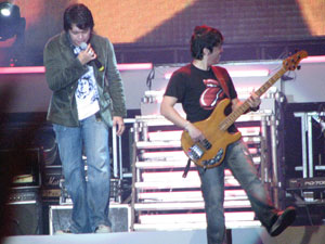 Dari awal juga udah siap-siap antisipasi crowd yang -udah bisa diduga- bakal rame dan brutal. Ya, secara ada dangdootannya pula gitu ya. Di awal acara kita di dua baris dari depan. Sempet dapet “Langit 7 Bidadari” dan bisa berloncat-loncat dan berpoto-poto. Tapi setelah si raja kacamata kuda itu maen, dorong-doronganlah semua fansnya mereka. Teringat kata-katanya Risma, “Ngapain maksain umpel-umpelan, besok-besok juga masih bisa liat ADA”. Daripada tetep di depan dan di dorong-dorong gak jelas, kita mundur. Lagipula gue lebih cinta badan sendiri dan kamera daripada sekedar ADA, tar klo lagi disirem-sirem aer terus kamera gue basah, sopo yang mau ganti hayoo??