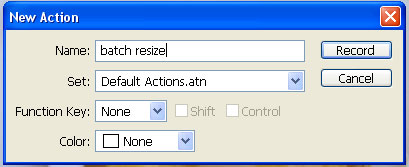 - Klik “create new action” dari window Action. Namai action baru ini “batch resize”