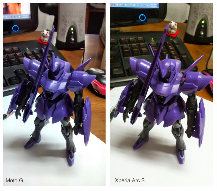 Berikut ini perbandingan foto yang diambil dengan Moto G dan Xperia Arc S, Xperia lebih contrast dan warnanya lebih mirip aslinya daripada Moto G. Untuk ukuran juga lebih besar Xperia (8MP untuk 4:3 dan 6MP untuk 16:9) dibanding Moto G (5MP untuk 4:3 dan 3MP untuk 16:9).